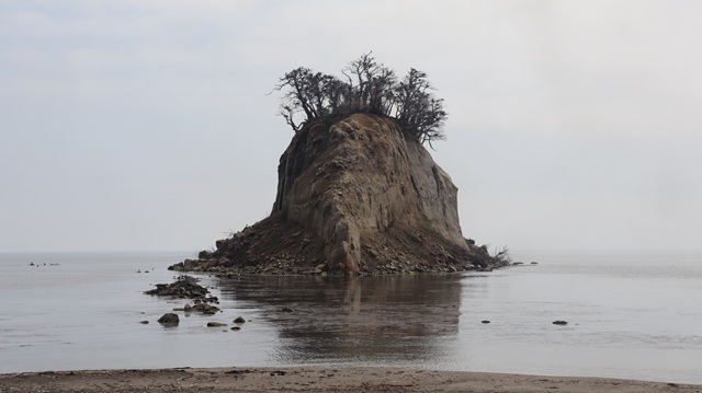 かつて急行能登路のシンボルマークにも使用されていた、見附島の現在の姿です。